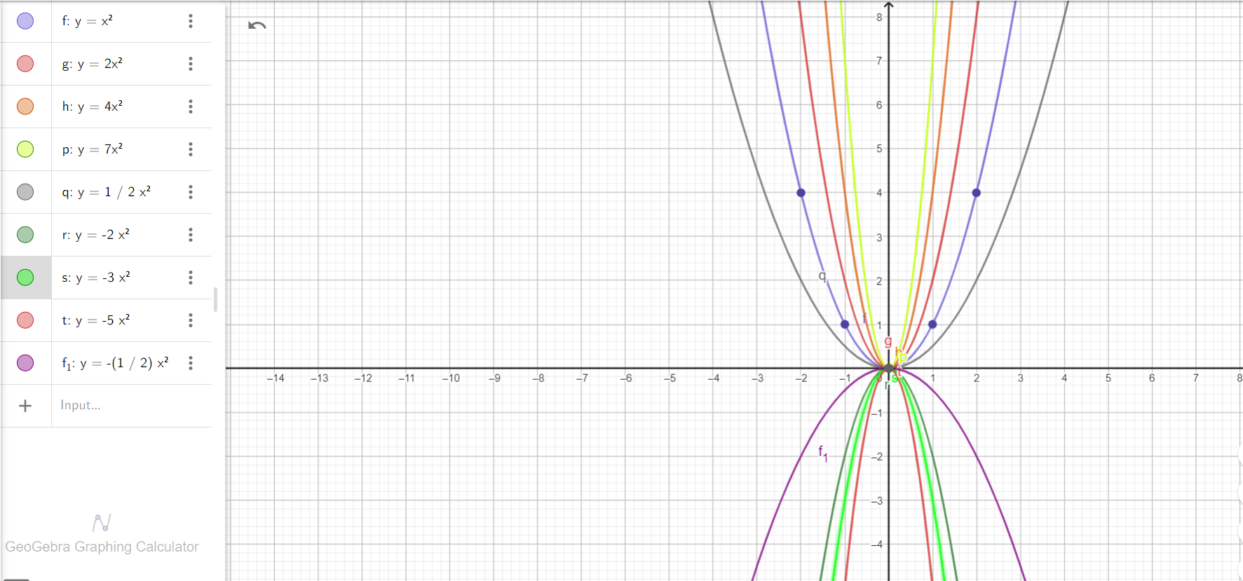 На сличан начин можемо нацртати и графике квадратних функција \(y=ax^2\), \(a≠0\).