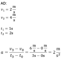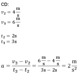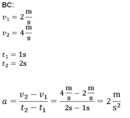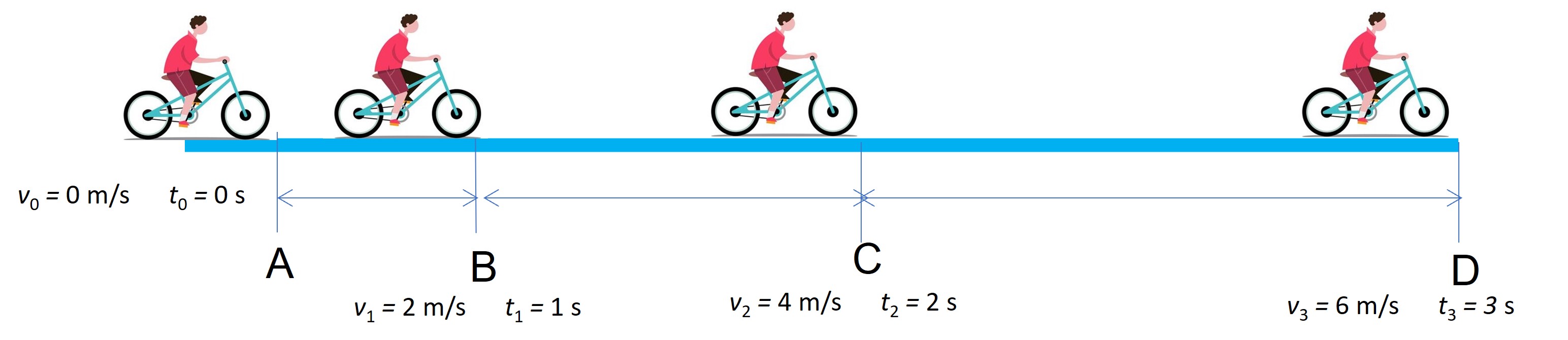 Задатак 3: Израчунати убрзање бицикла са дечаком на основу података датих на слици на деловима пута АB BC CD и AD.