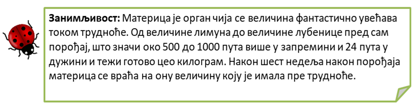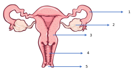 Јајовод (1), јајник (2), материца (3), родница (4) и стидница (5)
